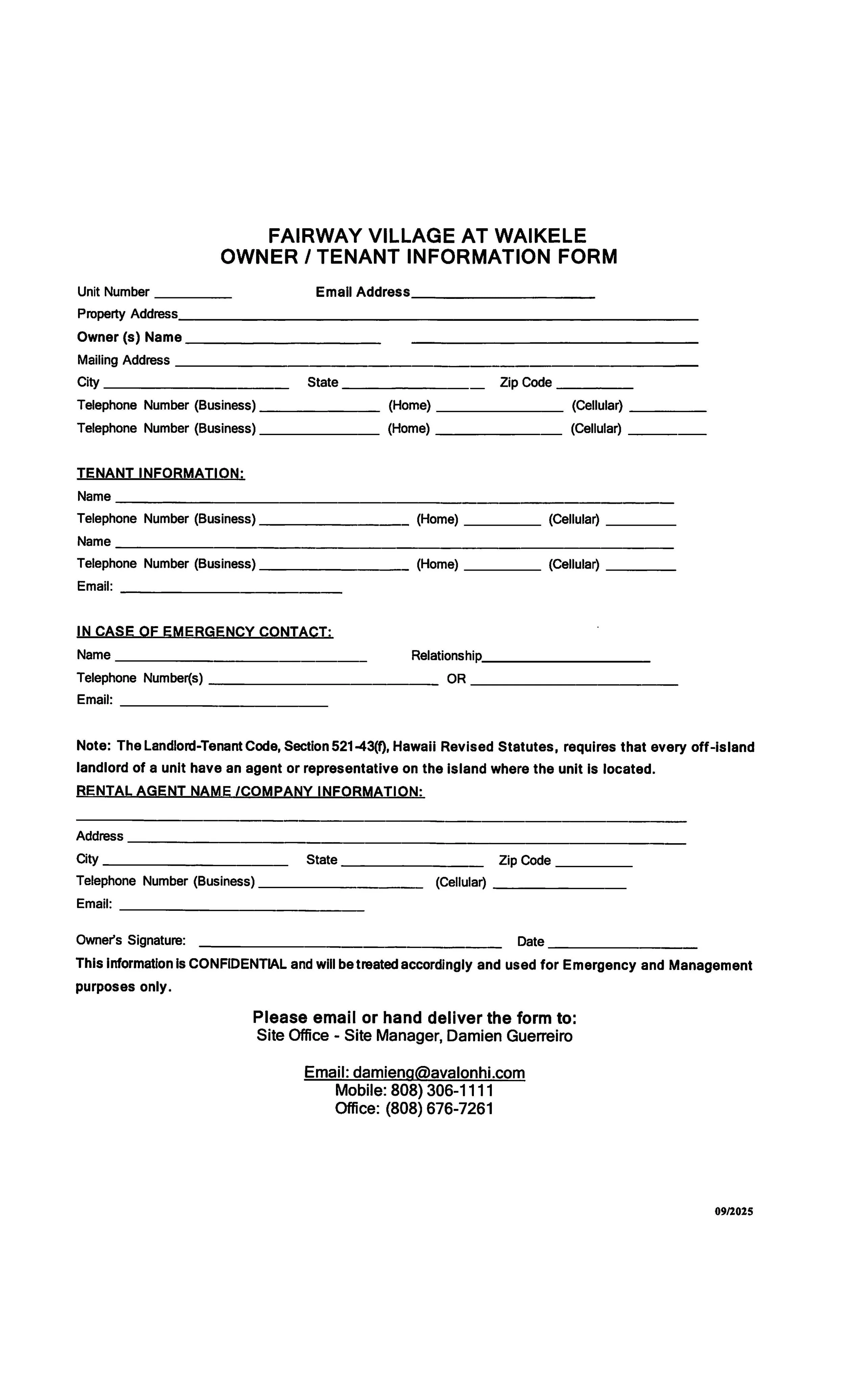 PLEASE PRINT UP FORM FROM (OWNER/ TENANT REGISTRATION) UP ABOVE ON MENU BAR, COMPLETE, AND EMAIL TO DAMIENG@AVALONHI.COM